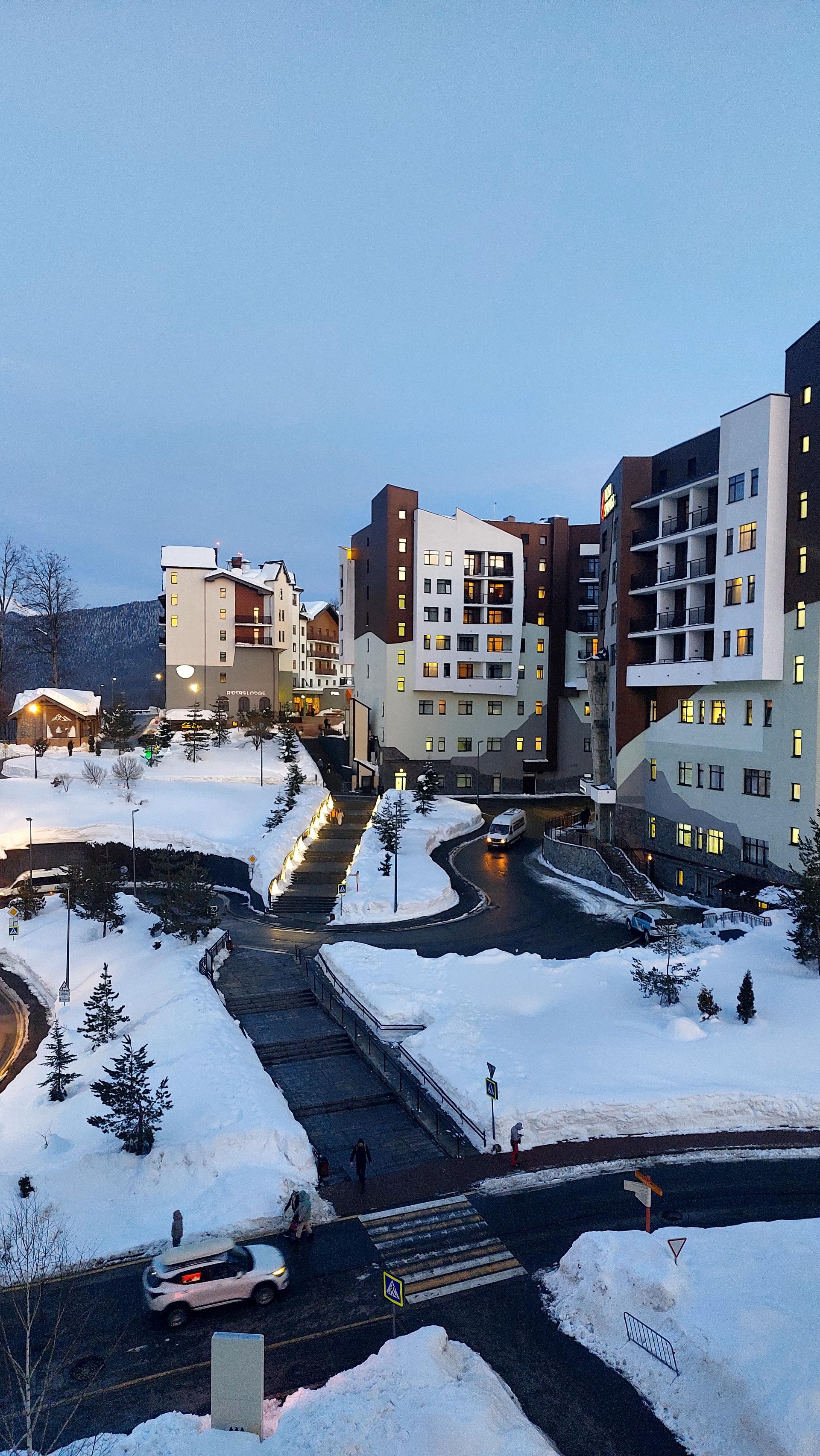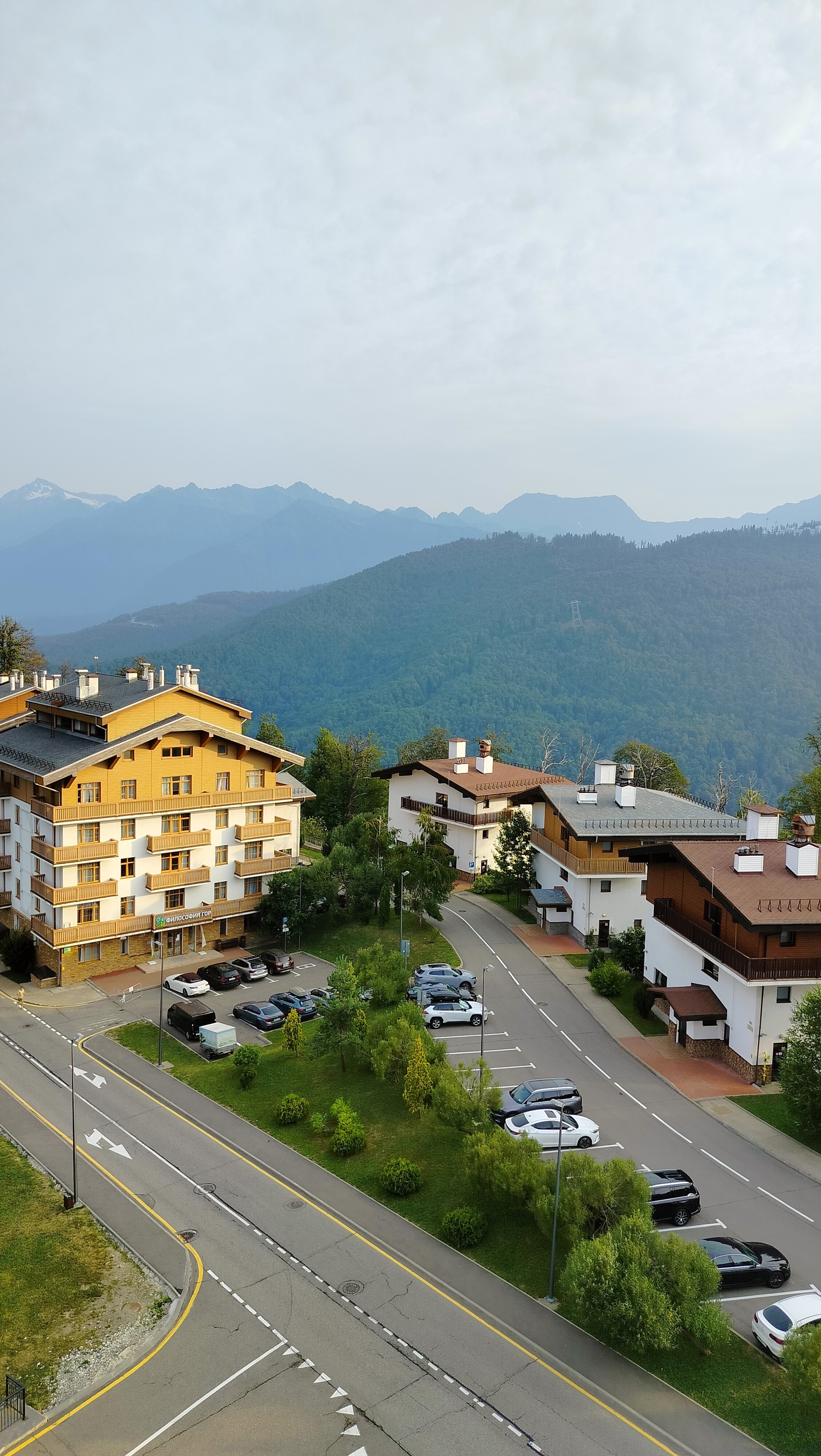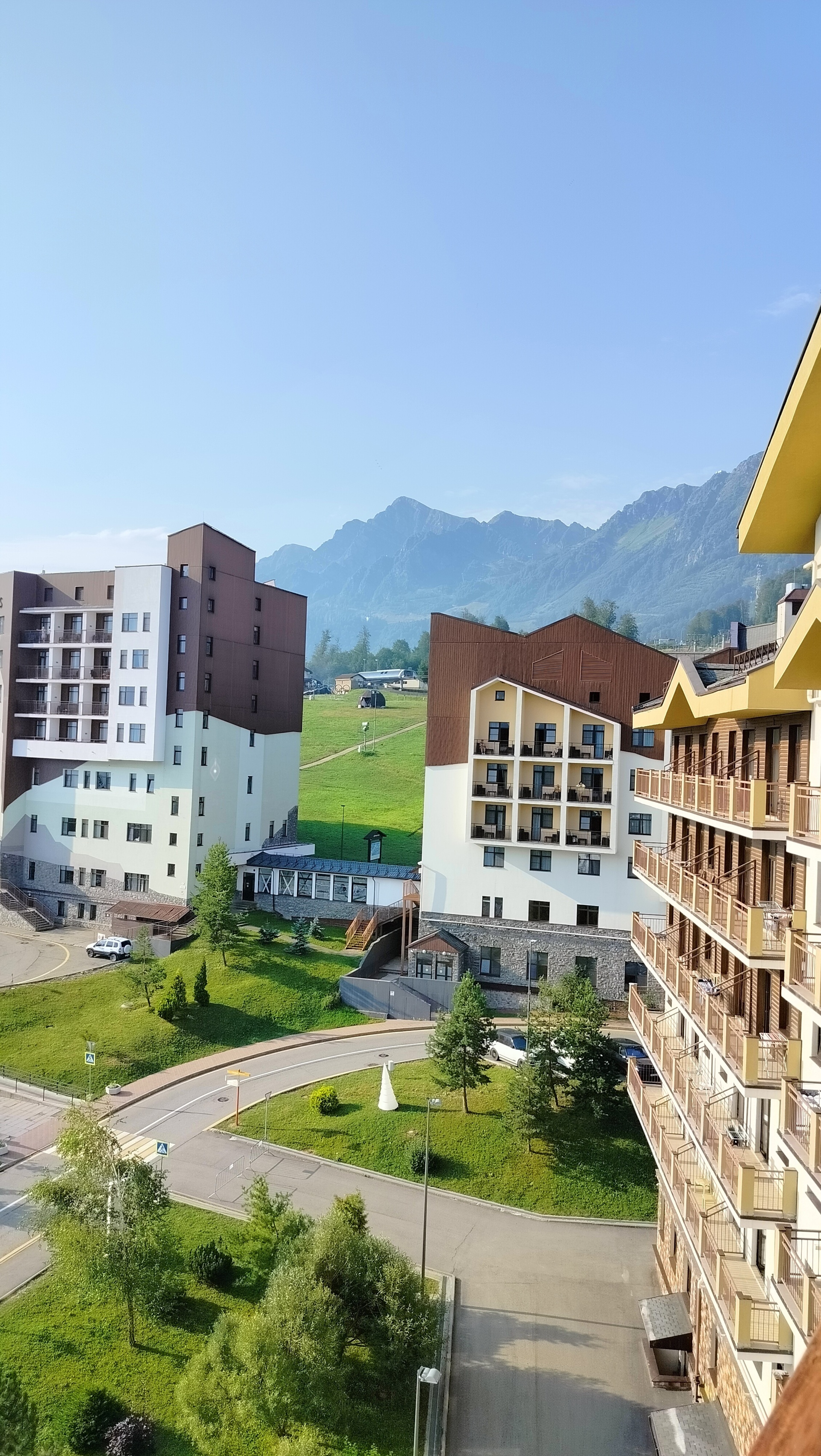Отличный отель! Бронировали двухместный номер с балконом в корпусе А. Вот несколько моментов которые возможно будут интересовать тех, кто хочет забронировать отель: - у отеля есть место для парковки автомобиля. Но за въезд на территорию и пребывание в нем платное), но можно оставить авто за шлагбаумом, благо места там предостаточно. - номер очень просторный, но простенький (да и зачем вам смотреть на обрамление стен, когда там такие виды. Окна, кстати, в данном корпусе в любом случае выходят на горы. - заселение на момент осени 2025 производилось в другом корпусе, поэтому нужно будет немного прогуляться. - вы можете приобрести безлимит на канатную дорогу вниз и наверх до отеля за 100 руб. в день на человека. - номера убирают хорошо, отель чистый, месторасположение 10\10. Думаю, что в следующую поездку так же остановимся тут.