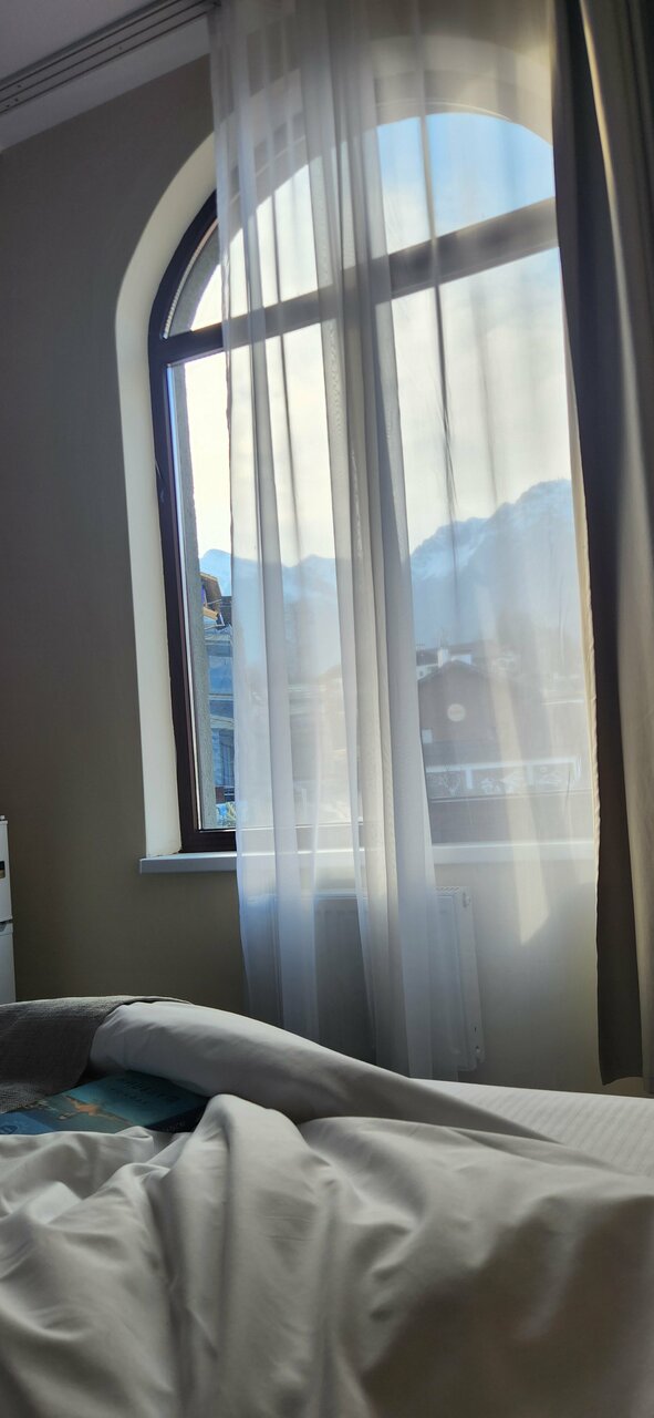 Что понравилось: отдыхали в ноябре 2025. понравилась цена. можно сказать жили практически бесплатно. 😃. Номера эконом. гостиница 2 звезды. Все очень простенько но оно и понятно. Нас не особо интересовал интерьер номера так как в нем только спали. Кровать удобная. Проблемма добраться с Роза хутор так как канатка работала до 3х часов а после ходили мини автобусы. Не все водители такси хотят заежать так как крутой подъем, серпантин и из за ремонта дороги много времени теряется. В гостинице покупали билетик на канатку. Стоил 100 руб на два дня, безлимит. Что не понравилось: нет предела совершенству Комментарий: все понравилось