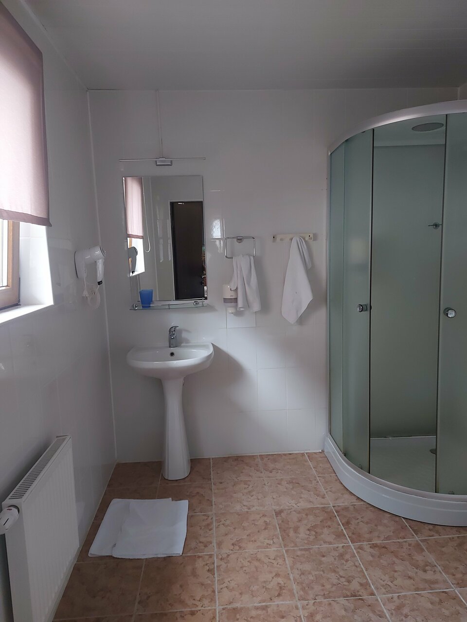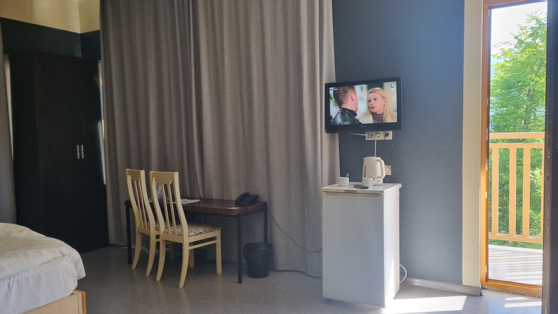 Для удобства гостей предусмотрена общая зона с кухней, оборудованной всей необходимой техникой. На первом этаже — кофейня и небольшой магазин. На территории предусмотрено место для хранения лыж. Отель pet-friendly — можно отдыхать с питомцем.