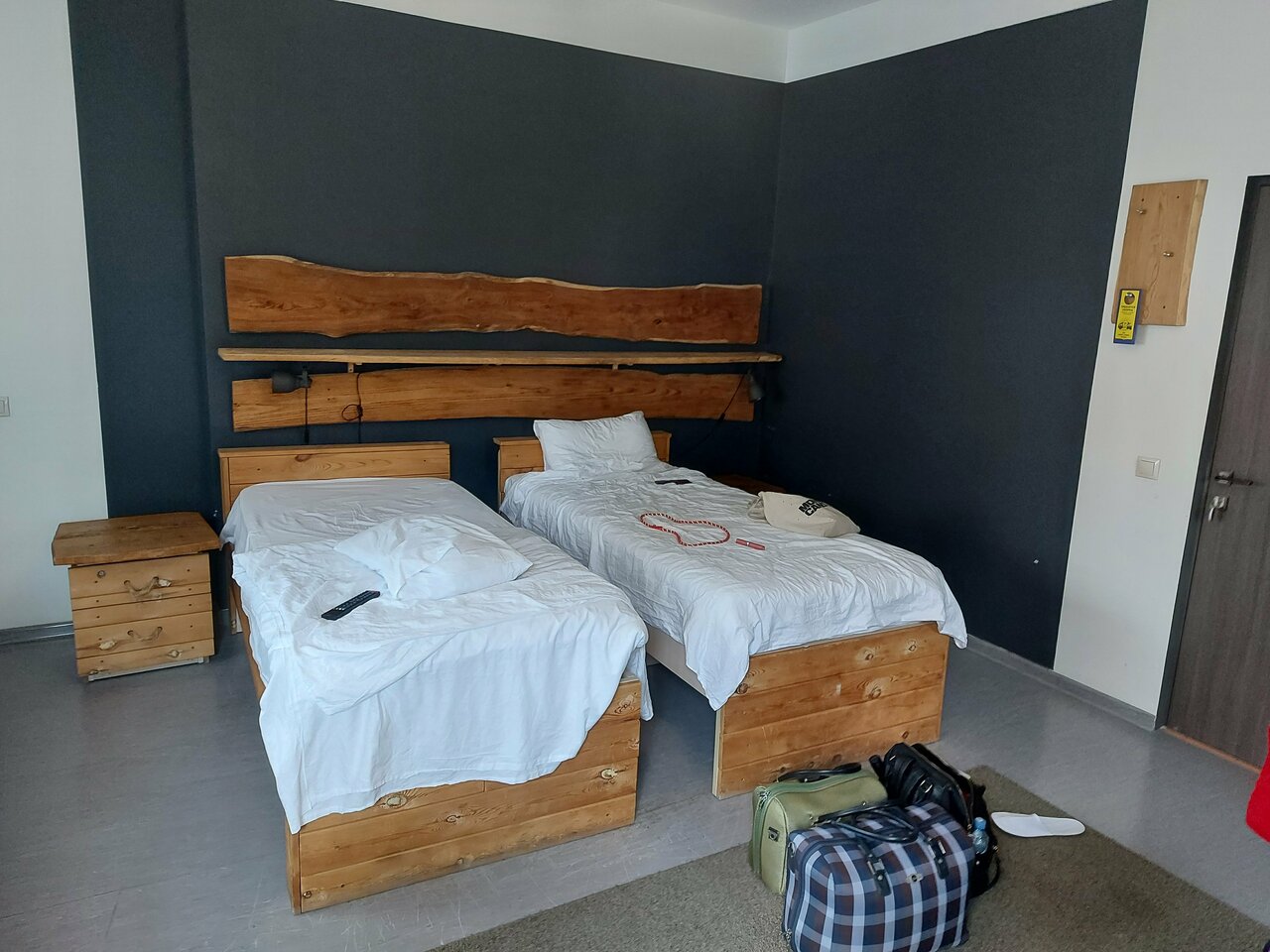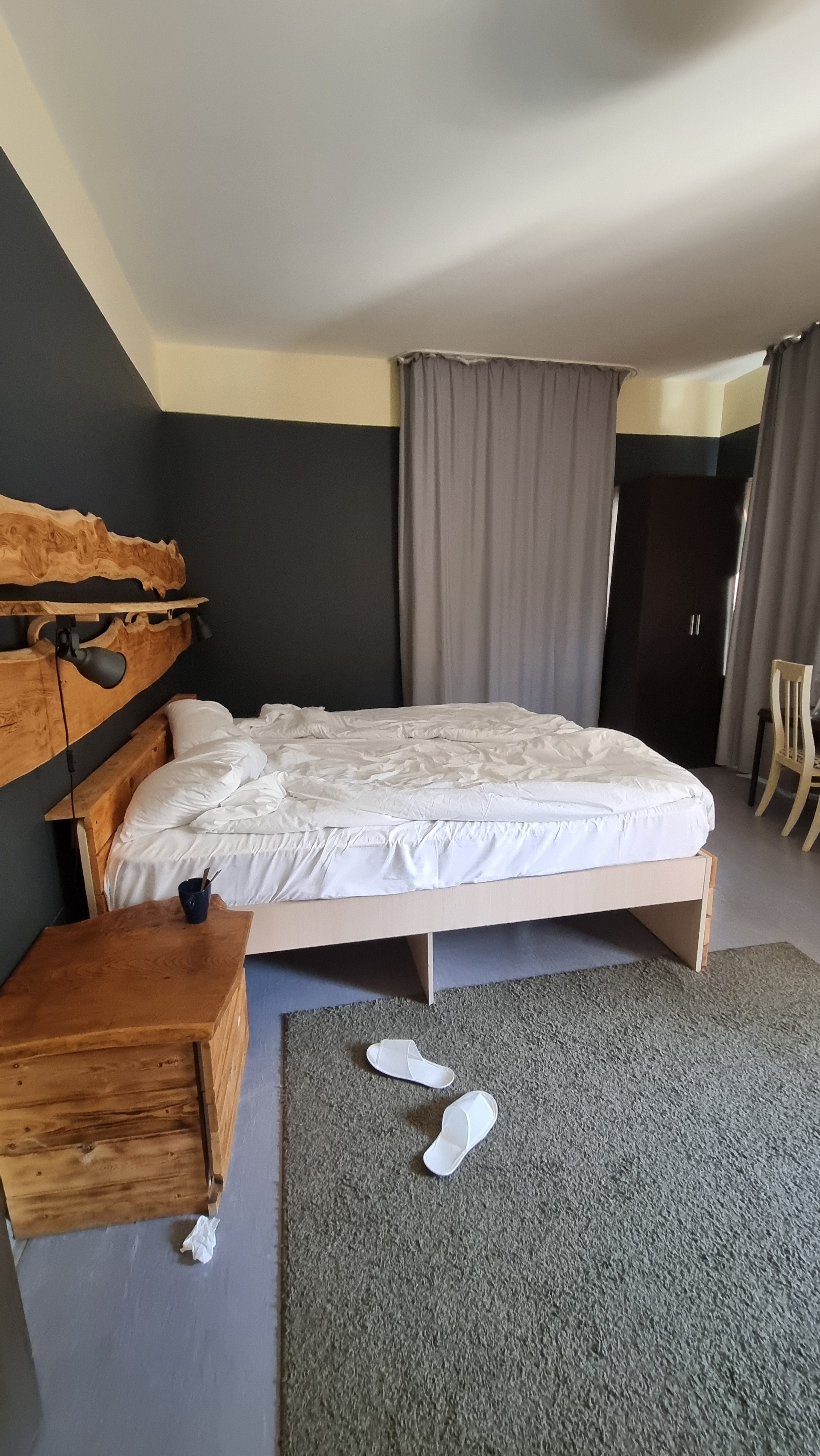 Интерьеры с элементами дерева напоминают о настоящем альпийском шале — тёплом, аутентичном и экологичном. Номера оснащены террасами, на которых приятно встречать утро с чашкой кофе, или принимать солнечные ванны на шезлонгах.
